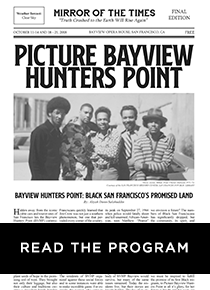 Experience a multidisciplinary, site-specific performance featuring live dance by Zaccho Dance Theatre, an original sound score and large-scale video focused on aspirations and dreams of Bayview Hunters Point residents. Witness the Bayview Opera House transform both on its exterior and inside its main hall through this dynamic visual storytelling. Featuring oral histories from local residents, Picture Bayview Hunters Point is a tribute to the strength, vision and resilience of our community as it undergoes great change. Free event.