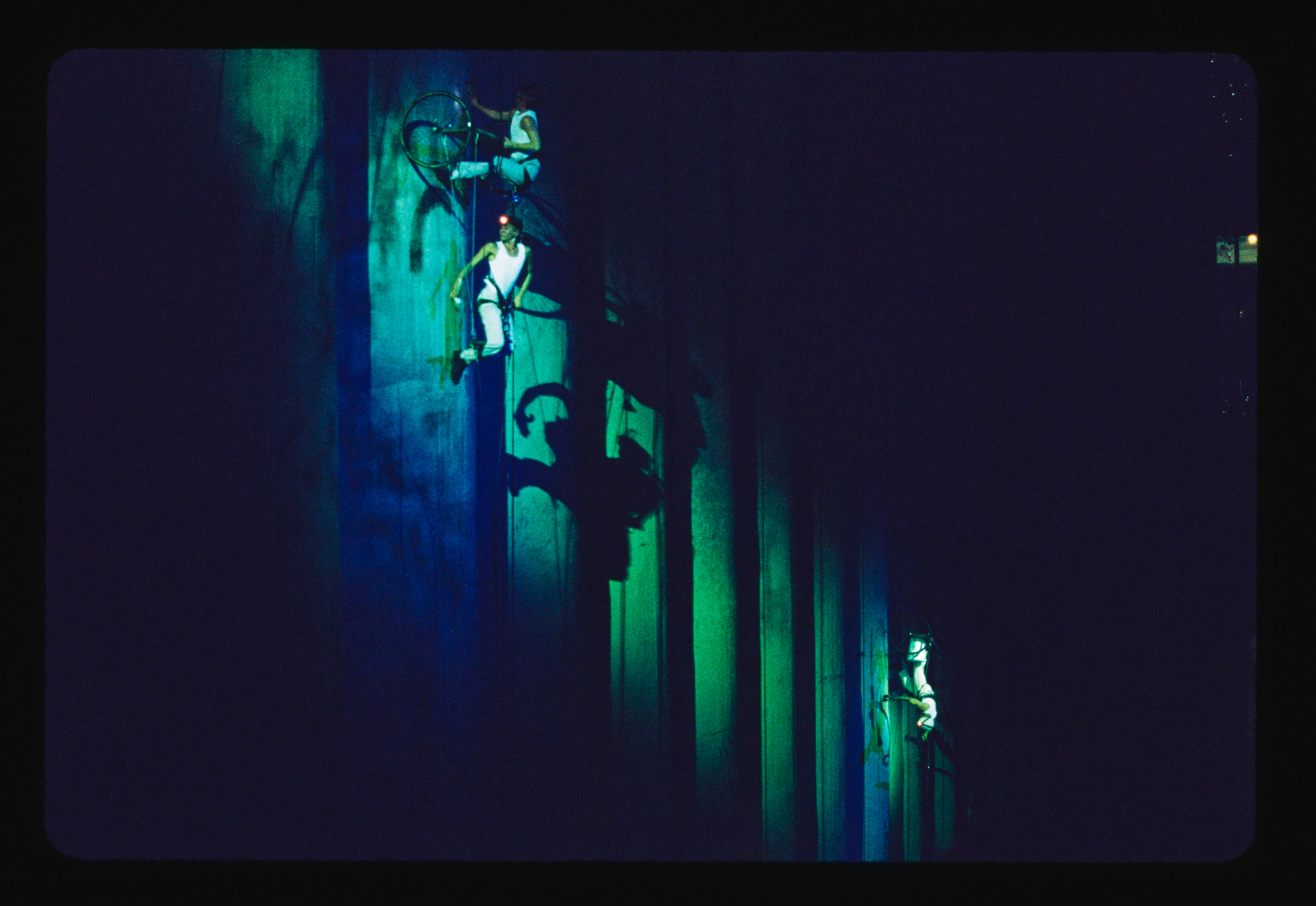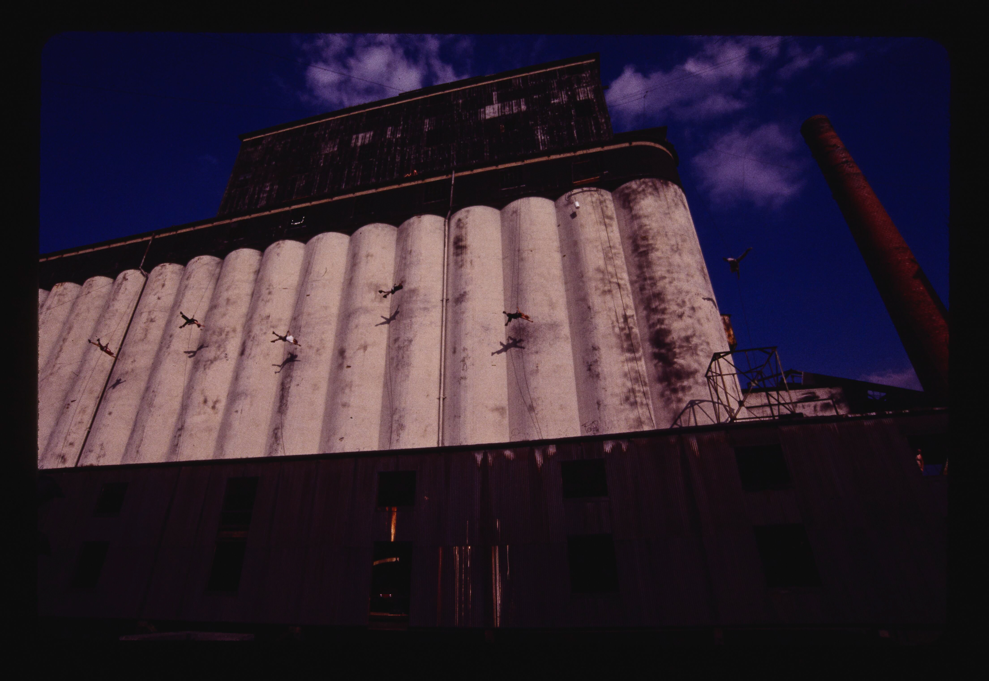 Over fifty residents were interviewed and videotaped by Joanna Haigood and her collaborators as part of the research process for Picture Red Hook. The performance included interview excerpts along with various other imagery that were projected to a height of 100 feet onto a 12-story grain terminal located within the Red Hook community. Spectacular aerial choreography allowed the seven member Zaccho dance company to interact with the images, architecture, and soundscore while suspended in the air. The idea of grain as sustenance underscores the wishes of the inhabitants for the sustainability of their community.