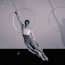 Kelsey na Gealaí is an aerial hoop artist and coach based in Santa Cruz. Originally from Seattle, WA, Kelsey founded circus arts in 2006 after ten years of ballet (Cornish College of the Arts) and acrobatic training. She studied static trapeze at SANCA (Seattle, WA) and Zuzi (Tucson, AZ) before landing on aerial hoop. Kelsey began training with Elena Panova at the San Francisco Circus Center in 2018, focusing on aerial hoop with a side of dance trapeze and swinging trapeze. Kelsey began working with Marie Michelle Faber (Cirque du Soleil) from 2021-2022 on act refinement and creativity. She performs and produces shows locally as Founder and Director for Circus of the Moon.