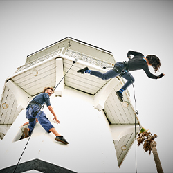 Taffe founded Aeriosa in 2005, to explore the transformative potential of vertical dance in collaboration with diverse local and international peers. Tracing connections between traditional and contemporary practices, Aeriosa artists contribute to the worldwide impact and relevance of vertical dance.