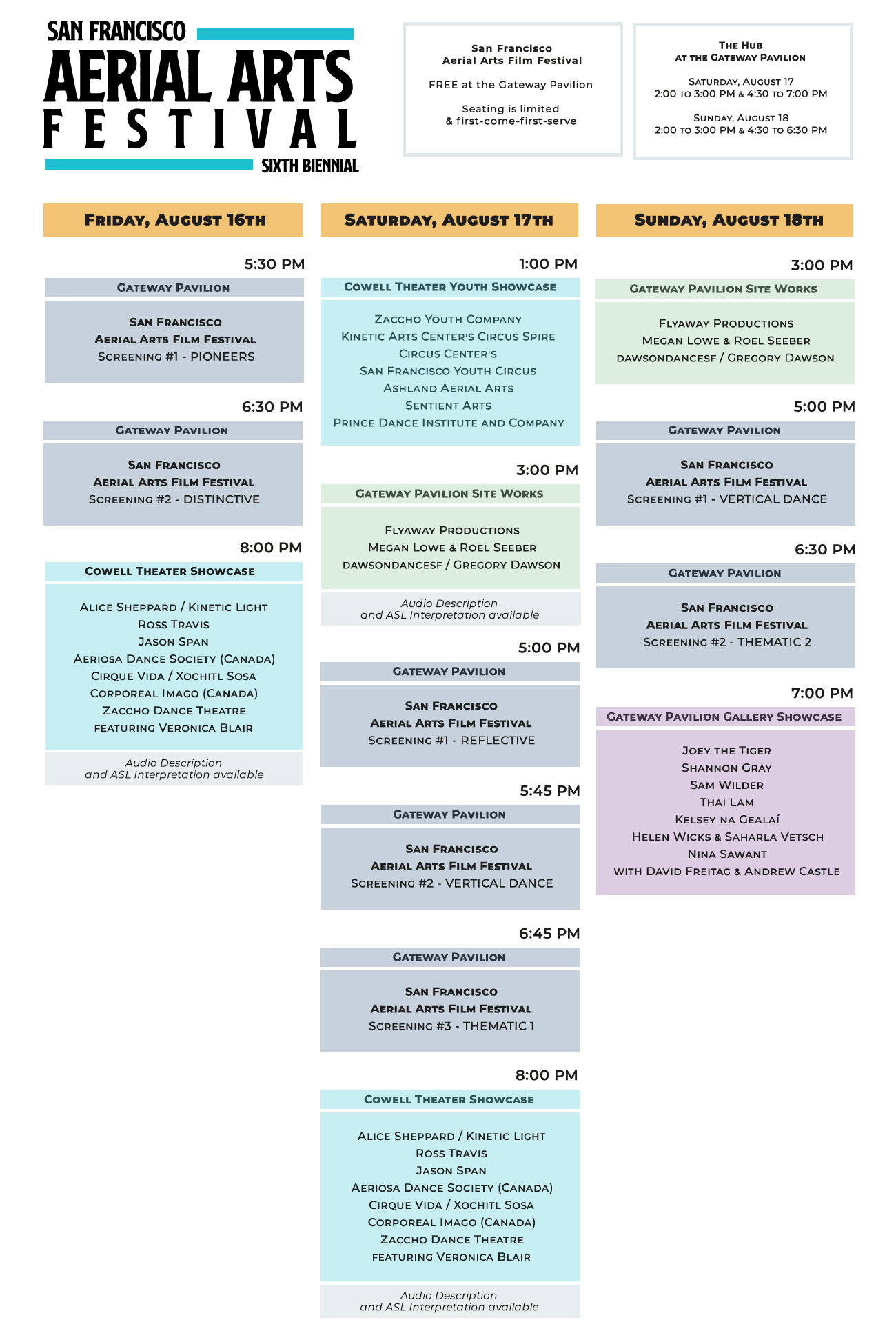 Please email sfaerialartsfest@zaccho.org or call (415) 822-6744 with questions and to pre-register and reserve a headset.